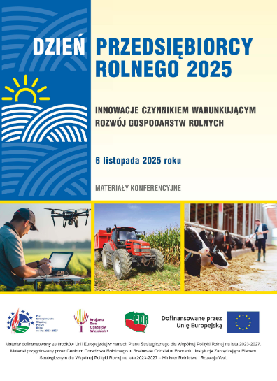 Materiały z konferencji Dzień Przedsiębiorcy Rolnego 2025 pn. „Innowacje czynnikiem warunkującym rozwój gospodarstw rolnych”. Konferencja zorganizowana została przez Centrum Doradztwa Rolniczego w Brwinowie Oddział w Poznaniu we współpracy z Wielkopolskim Ośrodkiem Doradztwa Rolniczego w Poznaniu i Mazowieckim Ośrodkiem Doradztwa Rolniczego w Warszawie. Publikacja zawiera treści prezentacji, które zostały wygłoszone na obradach plenarnych i w ramach paneli dyskusyjnych, dotyczących innowacji w produkcji roślinnej oraz innowacji w produkcji mleka.