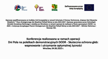 Film podsumowuje konferencję i pokaz polowy zorganizowany przez Dolnośląski Ośrodek Doradztwa Rolniczego w ramach operacji „Dni Pola” w dniu 4 czerwca 2025. Celem wydarzenia było zwiększenie świadomości rolników oraz poszerzenie wiedzy na temat skutecznych metod ochrony gleby, ze szczególnym uwzględnieniem wapnowania jako sposobu na utrzymanie optymalnej żyzności i zapobieganie stratom składników odżywczych.