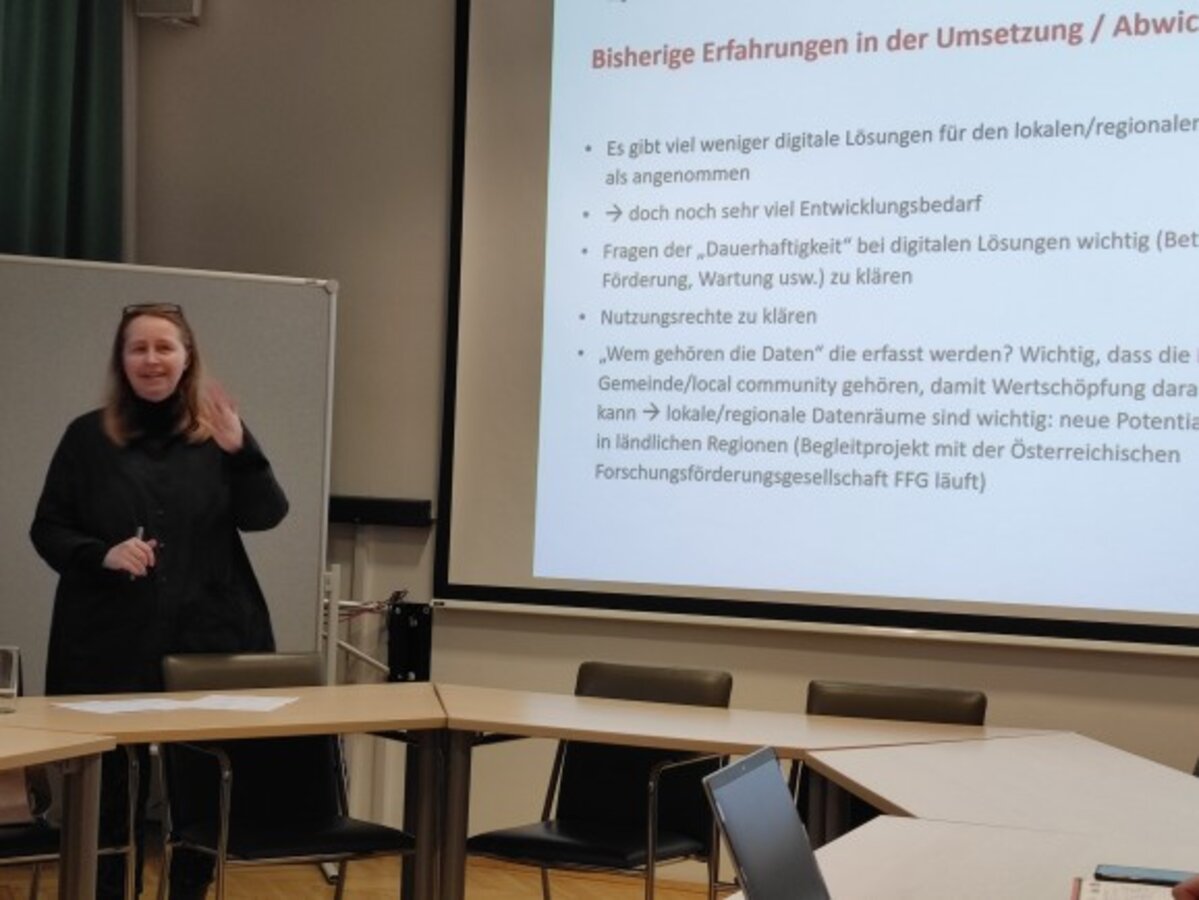 Drugim, stosunkowo unikalnym w skali UE sposobem wspierania Smart Villages w Austrii jest podejście łączące rozwój lokalny i rozwój obszarów wiejskich z innowacjami społecznymi oraz interwencją „Współpraca”, realizowaną poprzez Grupy Operacyjne. Rita Trattnigg przedstawiła interwencję 77-03, której celem jest tworzenie ekosystemów innowacyjnych w ramach wiejskich systemów innowacji. Interwencja ta wspiera finansowanie regionalnych sieci innowacji (LIN), funkcjonujących jako inkubatory innowacyjnych rozwiązań dla społeczności lokalnych. Sieci te są powiązane z odrębnymi działaniami wspierającymi konkretne projekty innowacyjne (LIP), realizowane przez grupy operacyjne EPI w obszarze innowacji społecznych. Zastosowane podejście ma również na celu przeciwdziałanie zjawisku tzw. „projektitis”, rozumianemu jako nadmierne rozdrobnienie i krótkoterminowość projektów.