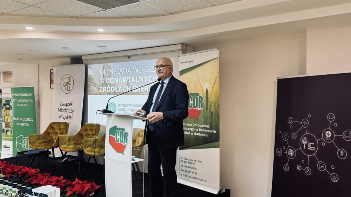 Rozwój odnawialnych źródeł energii (OZE) na obszarach wiejskich jest jednym z kluczowych elementów nowoczesnego i zrównoważonego rolnictwa. Wykorzystanie energii słonecznej, wiatrowej czy biogazowej pozwala gospodarstwom nie tylko obniżać koszty produkcji i zwiększać samowystarczalność energetyczną, ale również przyczynia się do ochrony środowiska i poprawy jakości powietrza. W tym kontekście niezwykle istotna jest edukacja młodzieży oraz wymiana doświadczeń między rolnikami, ekspertami i instytucjami wspierającymi rozwój OZE. Centrum Doradztwa Rolniczego w Brwinowie Oddział w Radomiu zorganizowało w ramach KSOW+ konferencję pn. „Wsparcie odnawialnych źródeł energii na obszarach wiejskich”. Wydarzenie odbyło się w dniach w dniach 2–3 grudnia 2025 r. Podczas konferencji odbył się również finał II edycji konkursu „Olimpiada Wiedzy o Odnawialnych Źródłach Energii”. Wydarzenia zostały objęte patronatem honorowym Ministra Rolnictwa i Rozwoju Wsi Stefana Krajewskiego oraz Ministra Energii Miłosza Motyki.