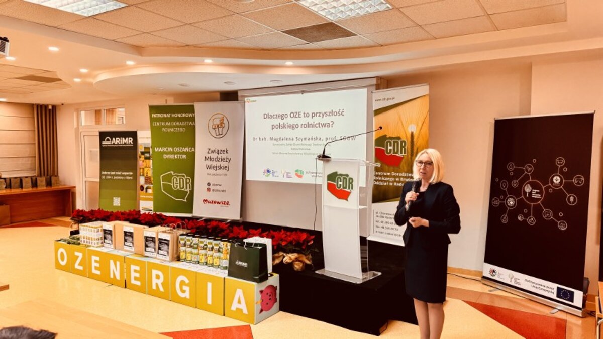 Pierwszą prelekcję wygłosiła dr hab. Magdalena Szymańska, prof. SGGW, odpowiadając na pytanie: „Dlaczego OZE to przyszłość polskiego rolnictwa?”. Podkreśliła, że odnawialne źródła energii tworzą podstawy dla rolnictwa niskoemisyjnego, a nadwyżki energii mogą być sprzedawane do sieci, co stanowi dodatkowe źródło dochodów. Zaznaczyła również, że nowoczesne instalacje energetyczne zwiększają samodzielność i samowystarczalność gospodarstw. Kolejnym prelegentem był dr hab. inż. Przemysław Motyl, prodziekan Uniwersytetu Radomskiego, który omówił kierunki rozwoju OZE w gospodarstwach rolnych. Wskazał, że odnawialne źródła energii są kluczowym elementem poprawy jakości powietrza oraz budowy niezależności energetycznej. Zwrócił uwagę, że pomimo okresowych spowolnień tzw. „zielonej rewolucji”, gospodarstwa mogą dzięki OZE obniżać koszty produkcji, redukować emisję CO₂, zwiększać konkurencyjność i rozwijać stabilne źródła przychodu. Pierwszy dzień konferencji zakończyła prezentacja Emilii Olszewskiej- Brzezińskiej z Krajowego Ośrodka Wsparcia Rolnictwa. Przybliżyła misję i wizję KOWR oraz przedstawiła szeroką ofertę edukacyjną instytucji obejmującą bezpłatne szkolenia, warsztaty, webinaria oraz projekty specjalne.