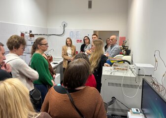 Po części wprowadzającej uczestnicy zostali podzieleni na grupy, aby dogłębnie zapoznać się z infrastrukturą Wydziału i Katedry Biotechnologii.