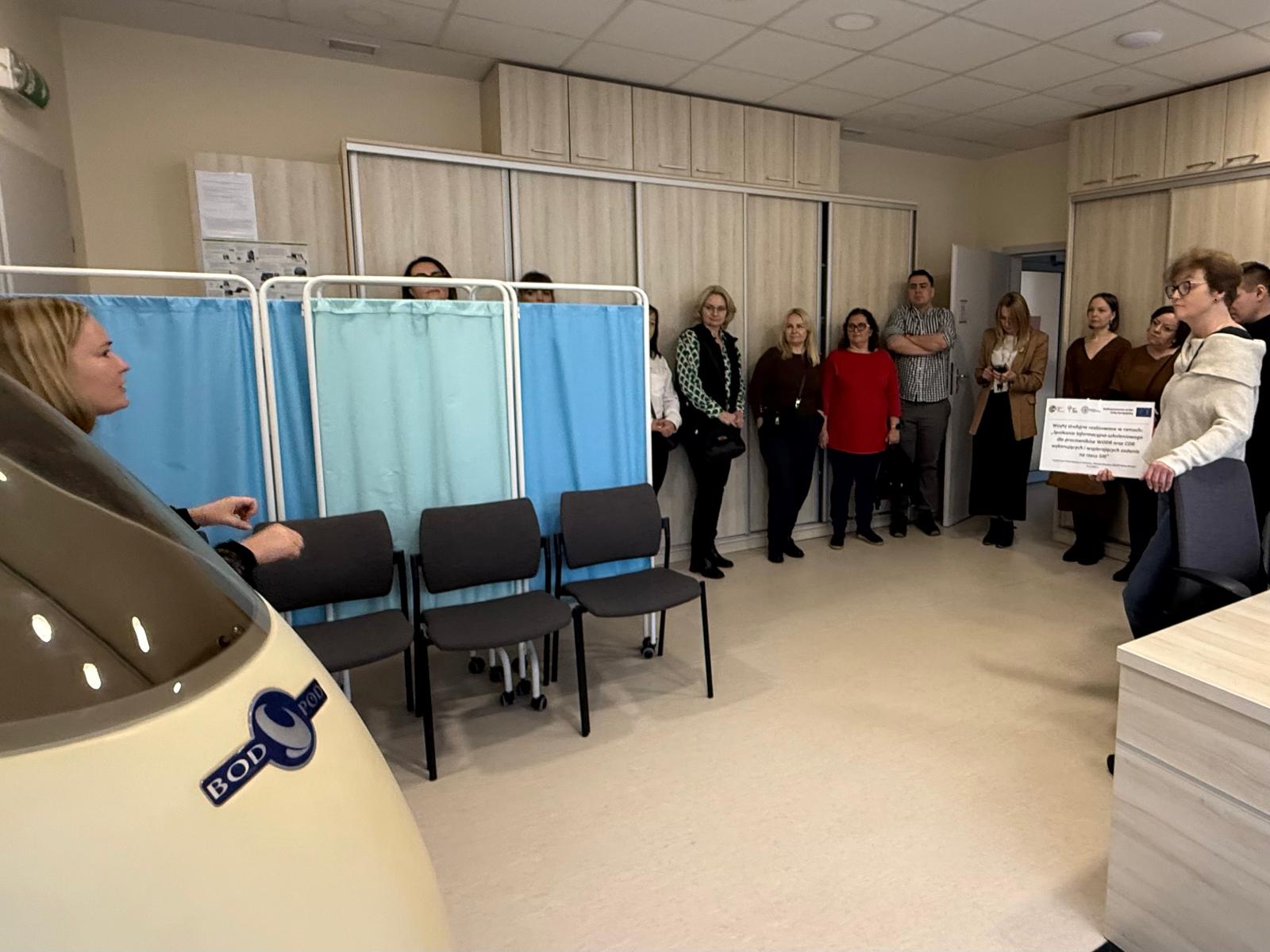 Pierwszym punktem wizyty był Ośrodek Badań Żywieniowych, gdzie prezentowane są końcowe etapy badań nad żywnością, realizowane z udziałem różnorodnych populacji, od sportowców do osób chorych. Kluczowym urządzeniem jest kapsuła BotPod, działająca na zasadzie wyporności powietrza, która stanowi "złoty standard" do badania składu ciała, oferując znacznie większą dokładność niż tradycyjne wagi. Uczestnicy zobaczyli również aparat DEXA, wykorzystywany głównie do diagnozowania osteoporozy, ale umożliwiający także precyzyjne określenie umiejscowienia tkanki tłuszczowej, w tym tkanki trzewnej otaczającej narządy wewnętrzne. W Ośrodku prowadzone są także badania zawartości pierwiastków we włosach i funkcjonuje poradnia dietetyczna, gdzie studenci odbywają praktyki.