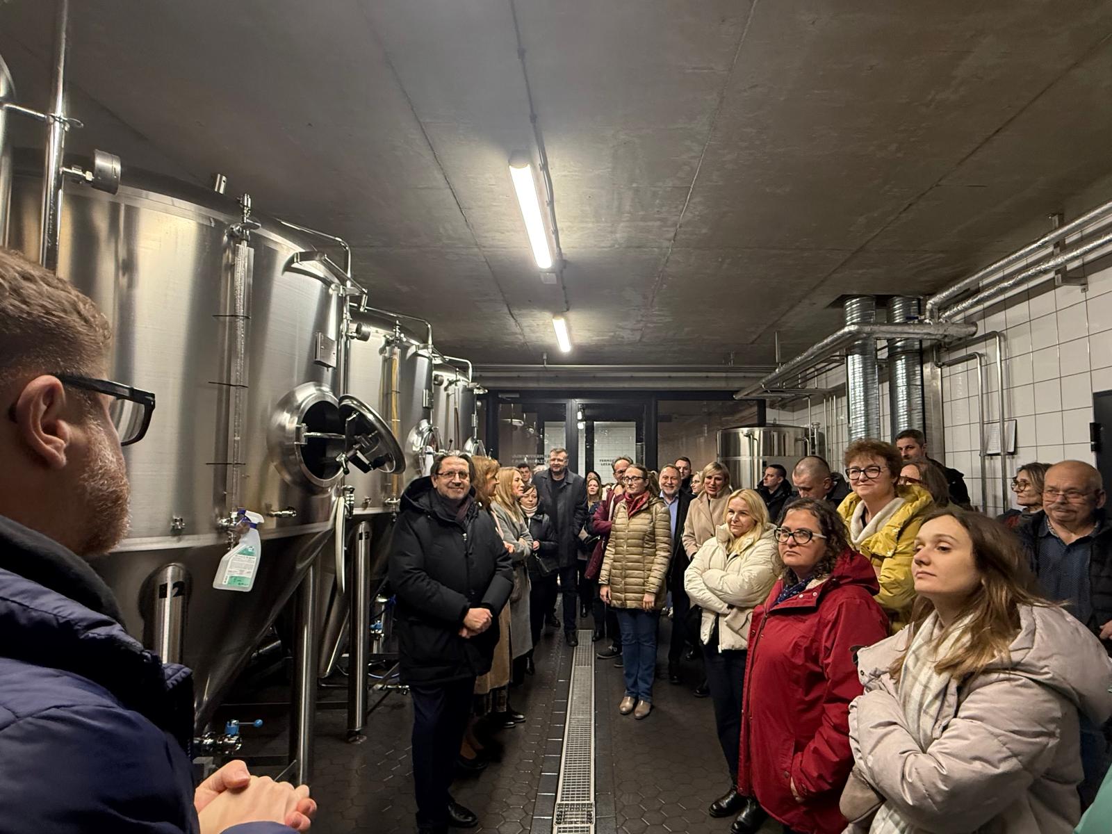 Właściciel folwarku Wąsowo, Piotr Wieła oraz jego wspólnik z Browaru Wąsowo, oprowadzali grupę, omawiając zarówno historyczny kontekst miejsca, jak i sam proces warzenia piwa.